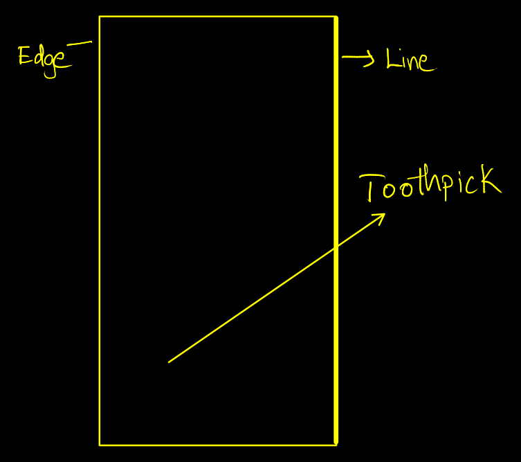 The problem therefore simplifies to as follows: Refer to the above figure. Suppose we have a piece of paper, over one of whose edge, a line is drawn. We must find the probability that a toothpick, of length equal to the width of the paper, falls on the line drawn.