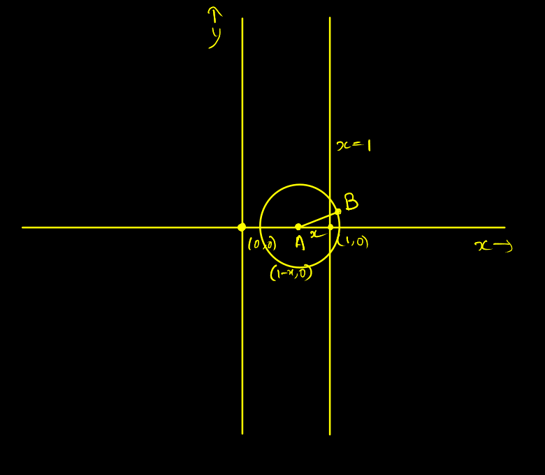 We shall first give coordinates to this fixed point $A$. Let us assume that the distance between $(1, 0)$ and $A$ is $x$. In other words, $A (1-x, 0)$ (we could also have chosen $A$ to be $(x,0)$. Our choice is purely for convenience).